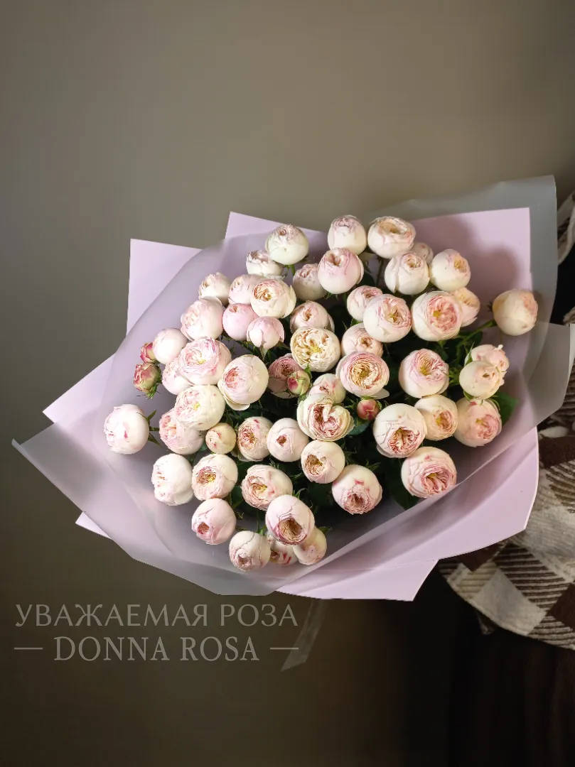 Этот букет кустовых пионовидных роз станет чудесным подарком для тех, кого вы цените и хотите порадовать. Прекрасное решение для любого особого случая и добавления романтической атмосферы.