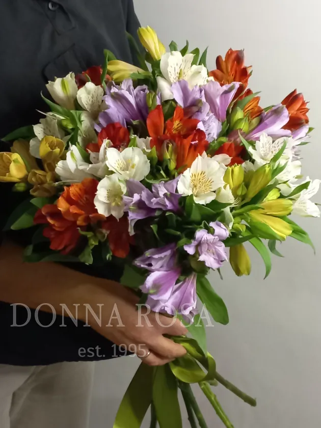 Букет из альстромерий - элегантное и изысканное сочетание разнообразных оттенков и форм. Этот букет станет прекрасным подарком, способным выразить самые искренние чувства.