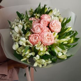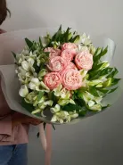 Нежный и элегантный букет из кустовой розы и белой альстромерии. Лёгкий и воздушный букет идеально подходящий для любого торжества.