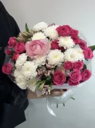 Букет «Встреча» – это яркое и элегантное сочетание свежести и утонченности. В его составе представлены густая зелень и кустовые розы, которые придают композиции насыщенный объем и насыщенный цвет. Кустовые хризантемы добавляют структуру и долговечность букету, сохраняя его красоту на долгое время. Элегантные альстромерии в сочетании с нежными ранункулюсами создают гармоничное сочетание форм и оттенков. Этот букет идеально подойдет для поздравлений и особых событий, подчеркивая важность и торжественность момента. «Встреча» станет отличным подарком для тех, кому важно выразить чувства красиво и стойко.