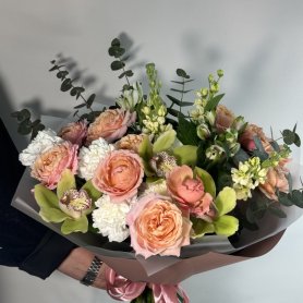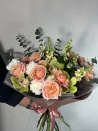 Букет «Настроение» — это изысканное сочетание свежести и яркости, созданное для поднятия настроения. В его состав входят элегантные кустовые розы, придающие букету романтичность и объем. Нежные маттиолы добавляют нежности и воздушности композиции. Орхидея привносит в букет нотки изящества и экзотики. Эвкалипт не только дополняет его ароматом, но и создаёт приятную текстурную контрастов. Такой букет станет прекрасным подарком для любого торжества или выражения чувств. Он подходит как для поздравлений, так и для украшения интерьера. Букет «Настроение» подчеркнёт индивидуальность и стиль каждого получателя.