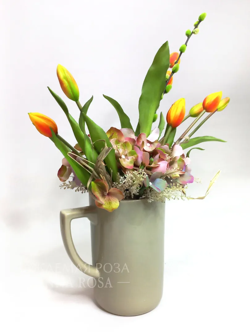 Композиция в кувшине с тюльпанами