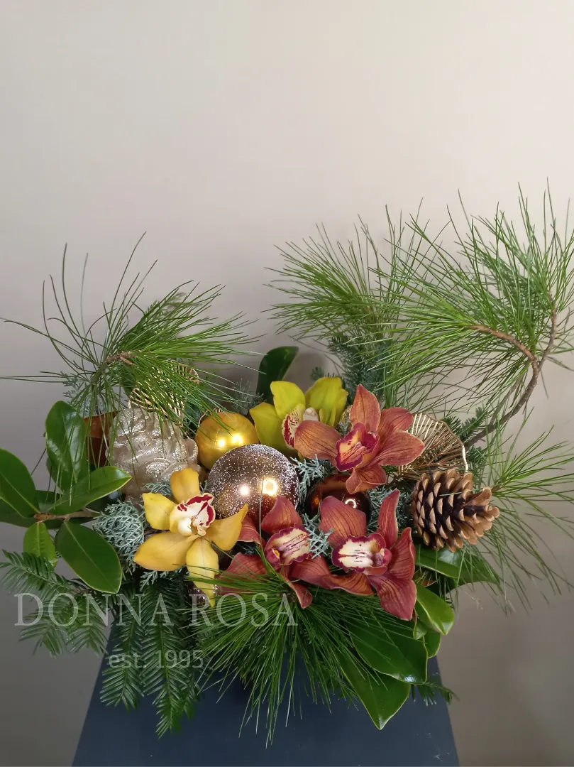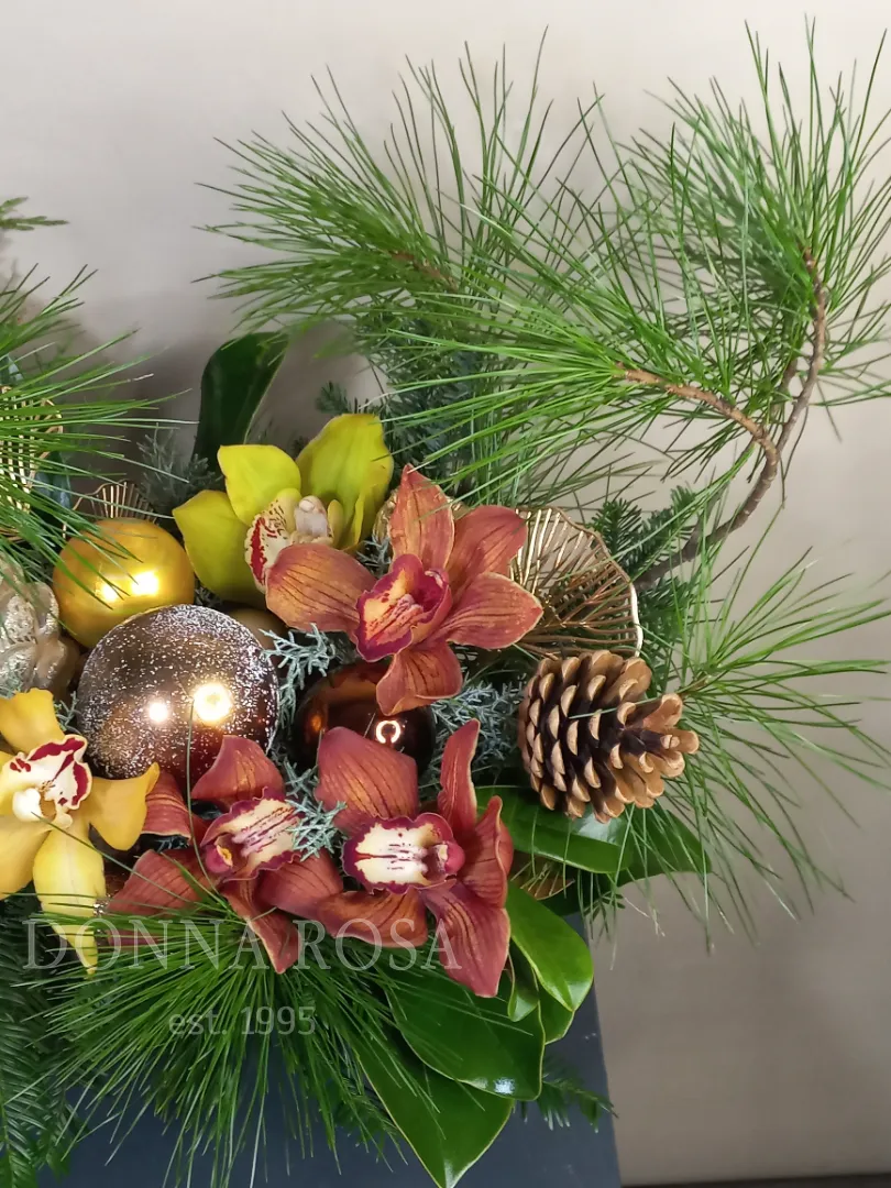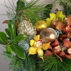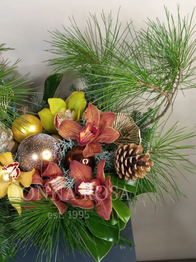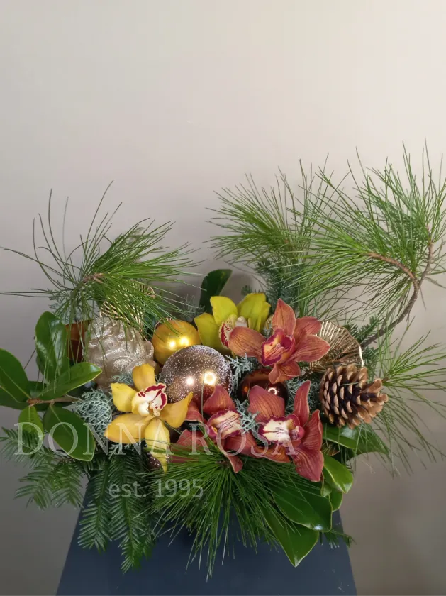 Эта композиция идеально подойдет для украшения гостиной, офисного пространства или в качестве оригинального подарка. Благодаря своей уникальной основе, она долго сохраняет свежесть и радует глаз даже после праздничных дней. Создайте особое праздничное настроение вместе с нашей новогодней композицией и подчеркните индивидуальность вашего интерьера.