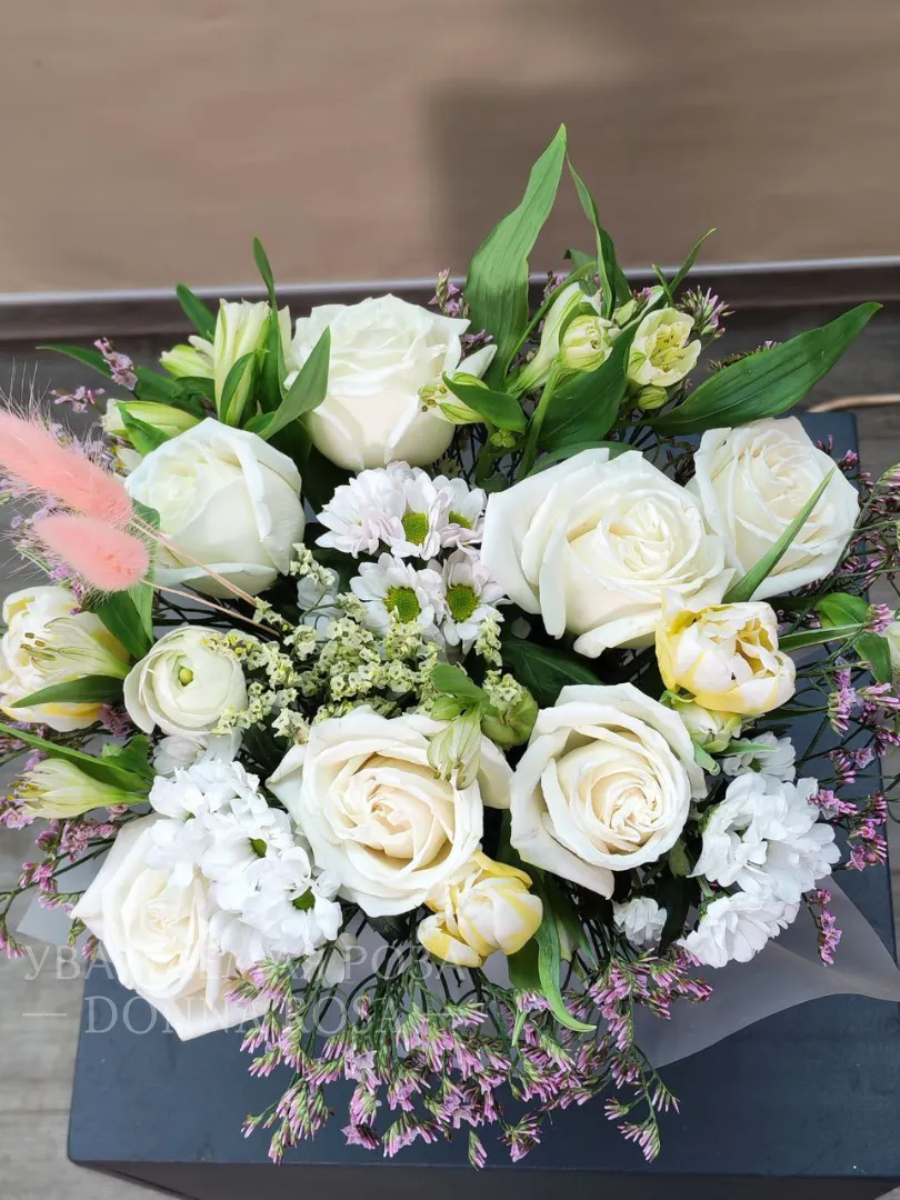 Цветы в коробке «Белое небо»
