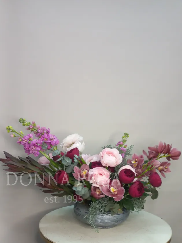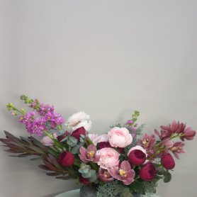 Композиция в кашпо «Гранатовый сок» — это изысканное сочетание ярких и благородных цветов, идеально дополняющее любой интерьер. В нее входят насыщенный голубой кипарис, нежные ранункулюсы и роскошные , винного цвета кустовые розы, которые создают ощущение свежести и уюта. Элегантные орхидеи добавляют композиции изящности и утонченности. Практичное кашпо подчеркивает естественную красоту цветов и обеспечивает надежную фиксацию. Эта композиция станет прекрасным подарком или ярким акцентом в вашем доме.