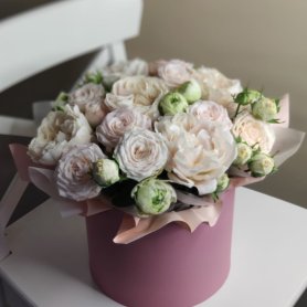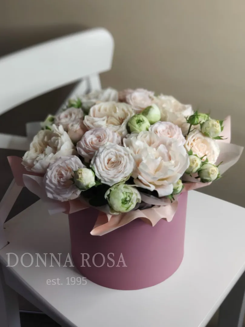 Букет-композиция в коробке «Нежный вечер» — это элегантное и изысканное решение для особого случая. В его составе свежие кустовые розы, создающие атмосферу романтики и уюта. Центральным элементом является пионовидная роза, придающая композиции нежность и утонченность. Такой букет отлично подойдет для выражения любви, признания или просто для поднятия настроения. Этот подарок непременно порадует получателя и оставит приятные впечатления.