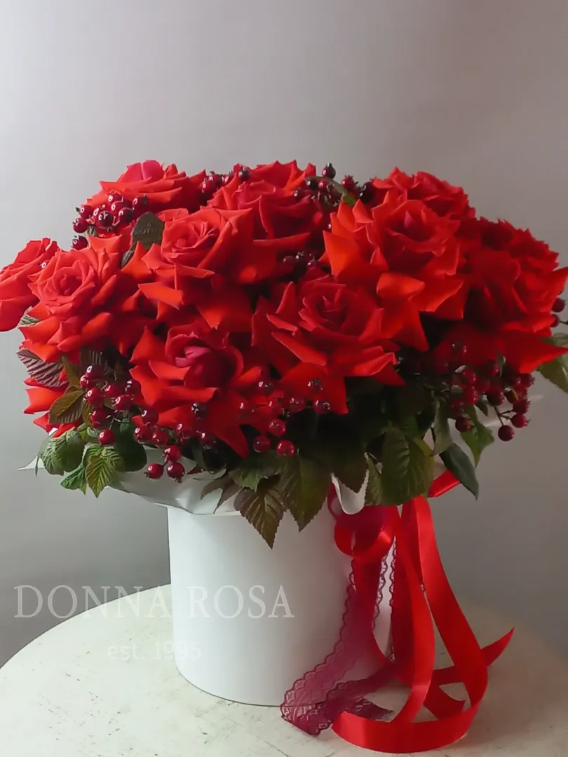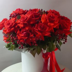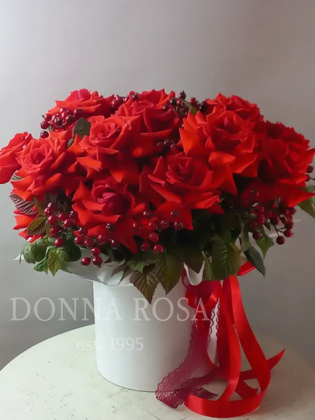 Букет «Страсть» в элегантной коробке изысканно сочетает яркие розы и декоративные элементы, создавая атмосферу романтики и страсти. Алые розы символизируют глубокие чувства и искреннюю любовь. Эта композиция идеально подойдет для выражения сильных эмоций и искренних чувств.