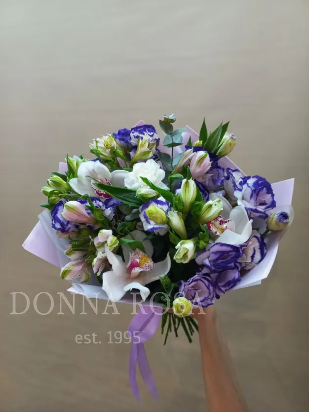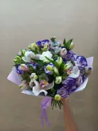 Букет «Фиолет» — это гармоничное сочетание изысканных цветов, идеально подходящих для любого случая. В ее составе оформлены элегантные альстромерии, нежные эустомы и изысканные орхидеи, создающие эффект роскоши и утонченности. Его яркий фиолетовый оттенок символизирует грацию, богатство и таинственность. Идеальный подарок для близких или деловой презент, который не оставит равнодушным никого.