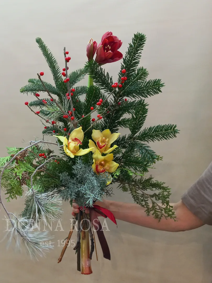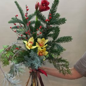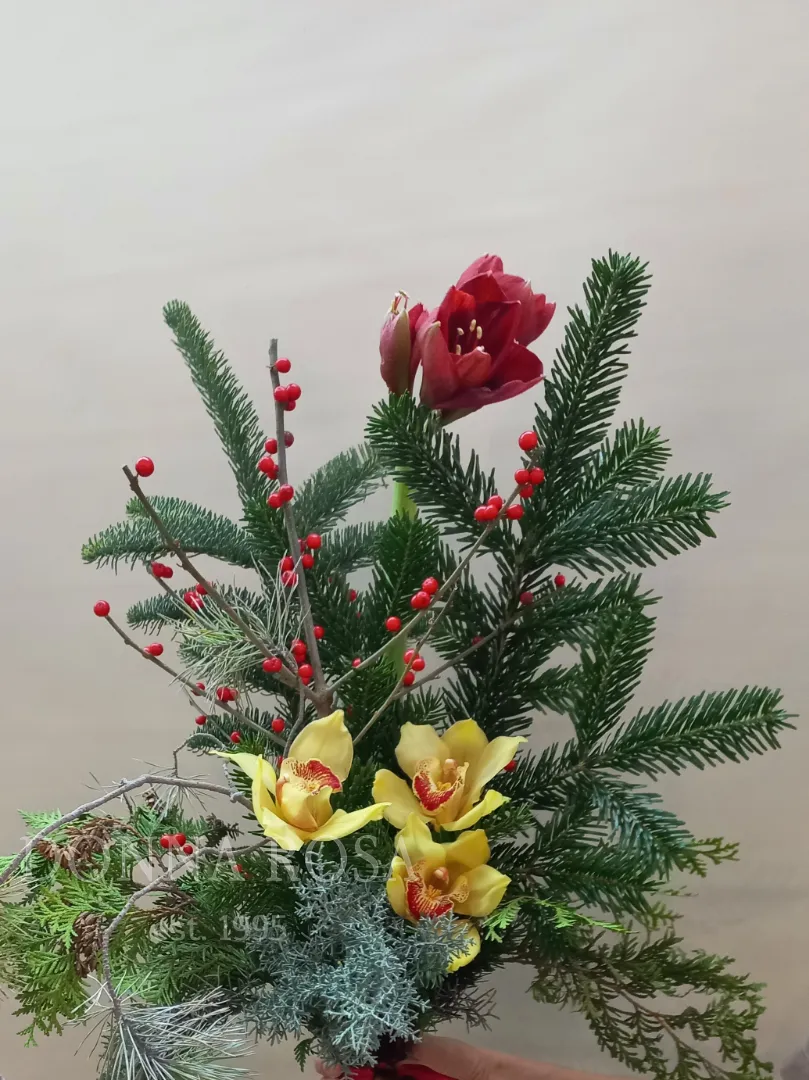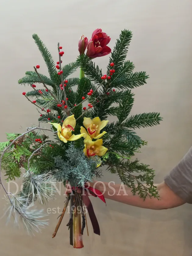 Букет«Яркая Зима»Идеальное решение, чтобы подчеркнуть праздничное настроение и создать уют в доме.Его яркий дизайн и насыщенные оттенки не оставят равнодушными никого.