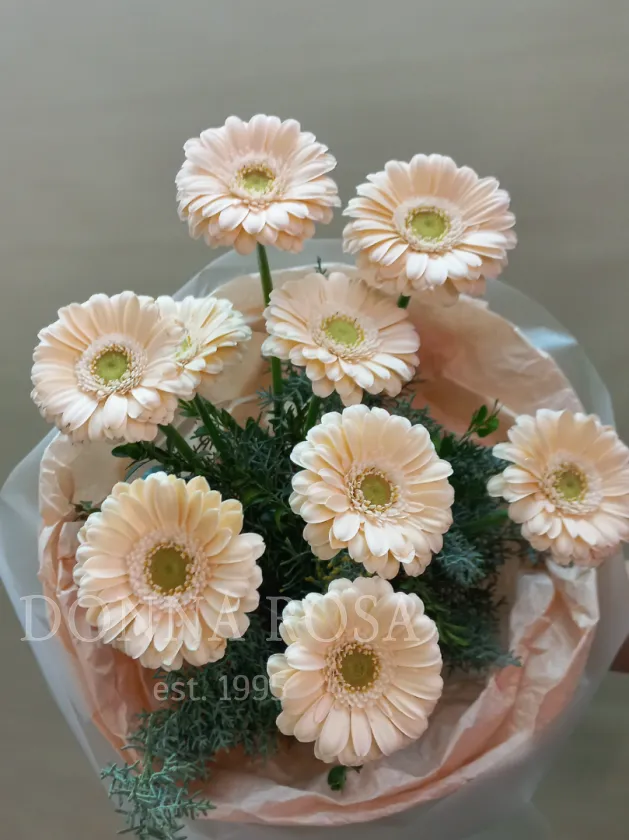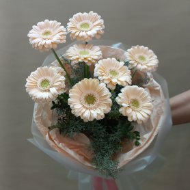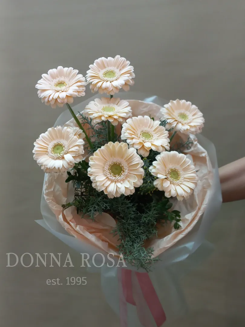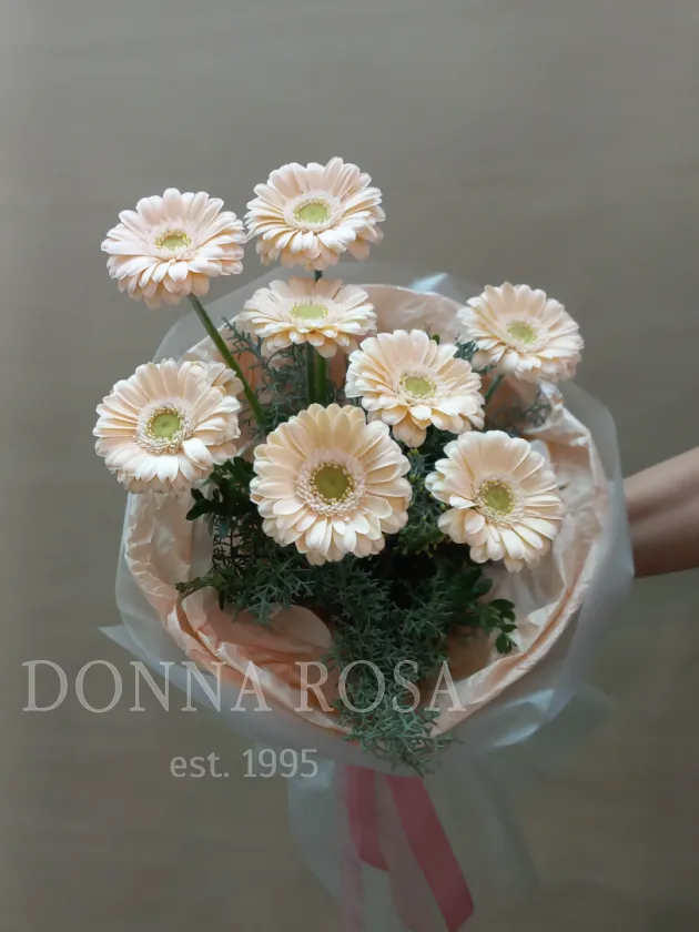 Моно букет «Солнышко» выполнен из мини гербер, которые создают атмосферу солнечного тепла и радости. Выглядит свежо и оригинально, благодаря гармоничному сочетанию цветов. Этот букет станет замечательным дополнением к любому празднику или приятным сюрпризом.