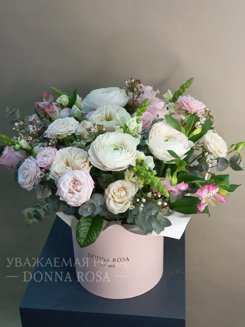 Погрузитесь в атмосферу весенней свежести с букетом «Звуки весны». В его составе изящные кустовые розы, нежные альстромерии и мечта всех девочек Ранункулюсы