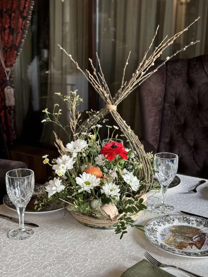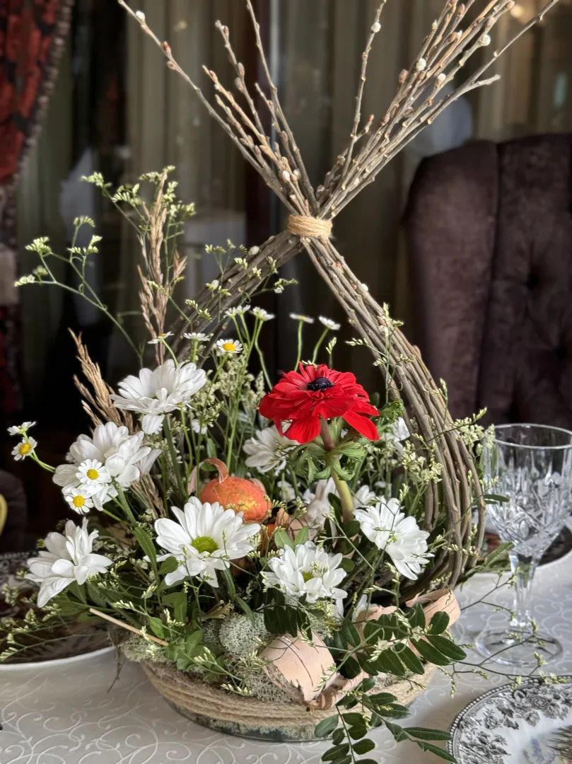 Композиция в корине с Хризантемами